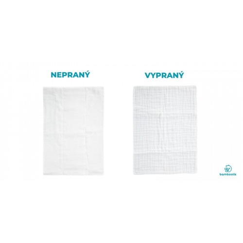 Svoji načechranost a jemnost získá mušelín až po prvním praní. Proto na fotkách v přehledu vidíte rozdíl mezi nepranou vkládací plenou a pranou vkládací plenou.